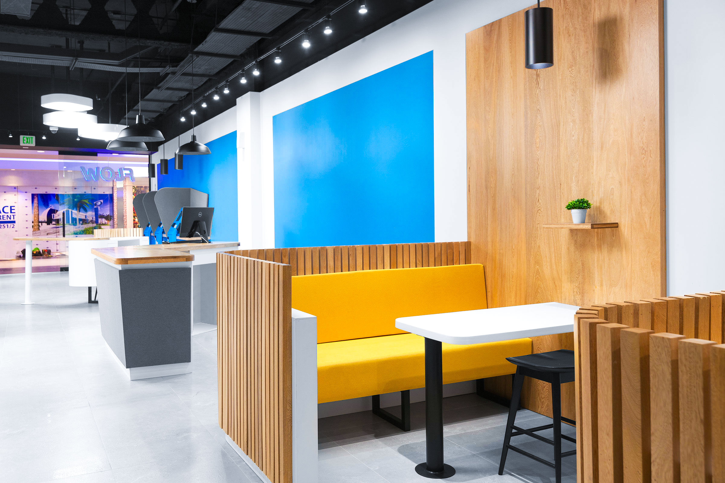 Under the cube there are withdrawable soft modules, and inside the cube there is a live tree that is illuminated from the above roof window. This is a place for solitude, meditation and relaxation. Thus, with the help of withdrawable modules, you can create different zones for conversations, board games, and the one who needs to retire can go and have a rest under the tree.